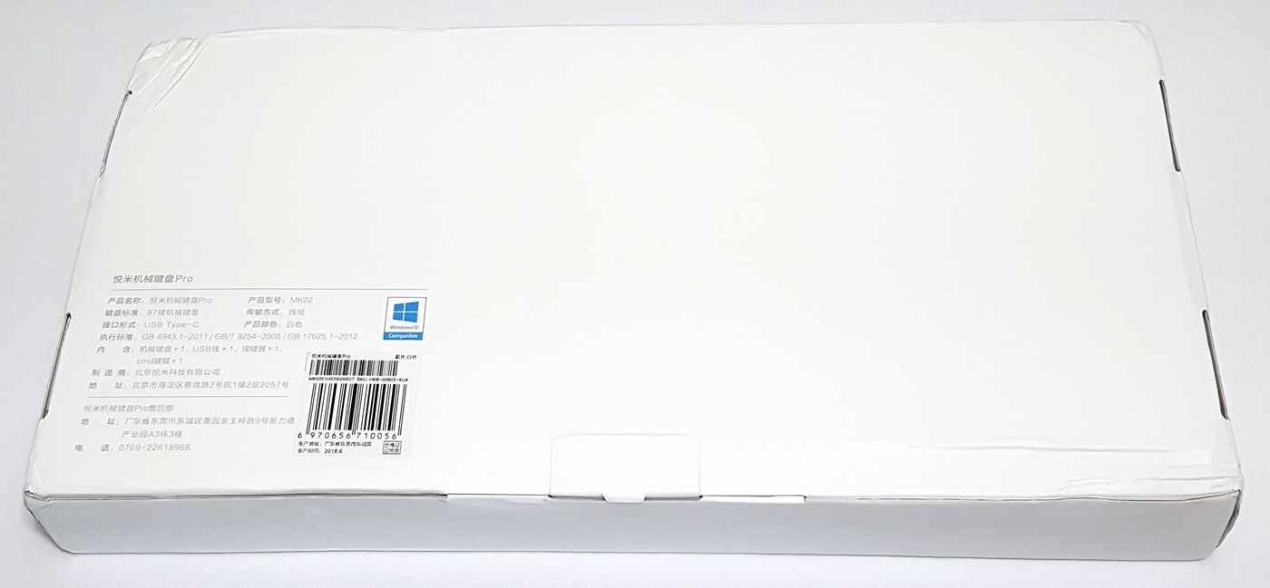 The packaging of the Xiaomi Yuemi Pro MK02 is pretty much identical to the original model. A mostly plain white box with a large picture of the actual keyboard printed on top and some additional information/specs listed on the bottom (in Chinese).